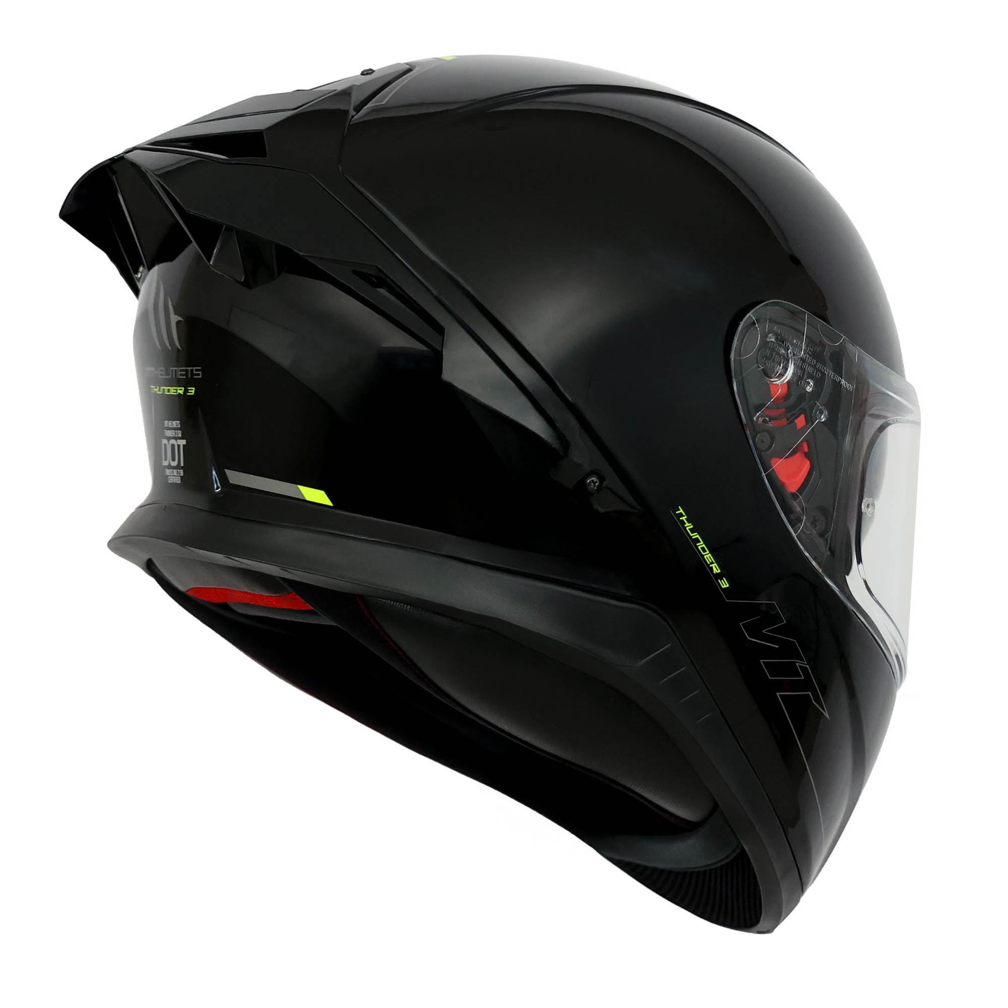 The MT Thunder3 is the ultimate all-round helmet with an aerodynamic shell, multiple vents, integrated drop down sun visor. The MT Thunder 3 SV Helmets is built for riders who want race-inspired design with everyday practicality. Featuring graphics in a stunning gloss finish, this full-face helmet combines professional-level styling with advanced safety features. With an integrated rear spoiler, internal sun visor, and enhanced ventilation, the Thunder 3 SV delivers high-end performance, aerodynamic stability, and unmatched visual appeal for every ride.